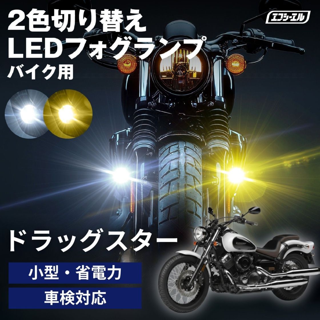 バイク フォグランプ クランプバー フロントフォーク LED 2色切り替え カットライン 小型 後付け 黄色 ホワイト スイッチ ...