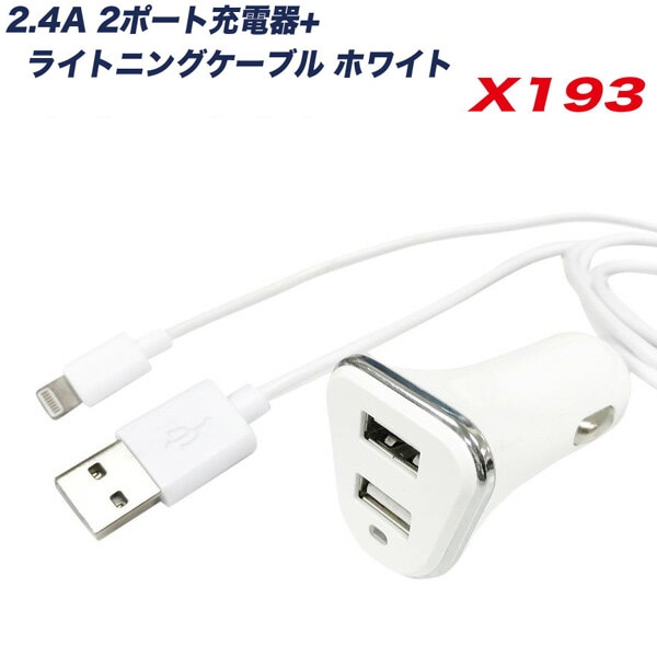 2.4A USBポート+ライトニングケーブル 1.0m DC12/24V車兼用 ホワイト 充電 同期 シガーソケット/アークス X...