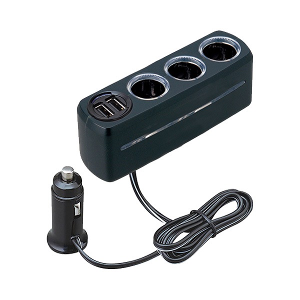 【セール】即納 安い 車載充電器 3連増設シガーソケット シガーライター分配器 3USBソケット 急速充電 電圧バッテリー表示 送...