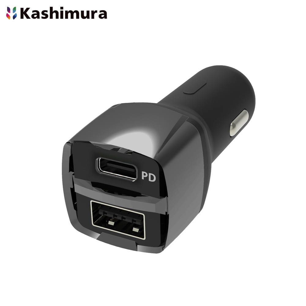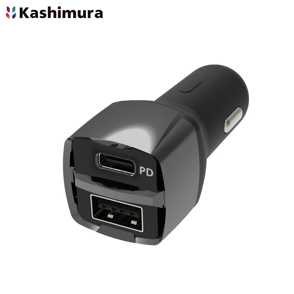カシムラ DCソケットからUSBへ変換 充電器 PD 9V 2A Type-C ブラック 2ポートUSB PD対応純正ケーブルで高...