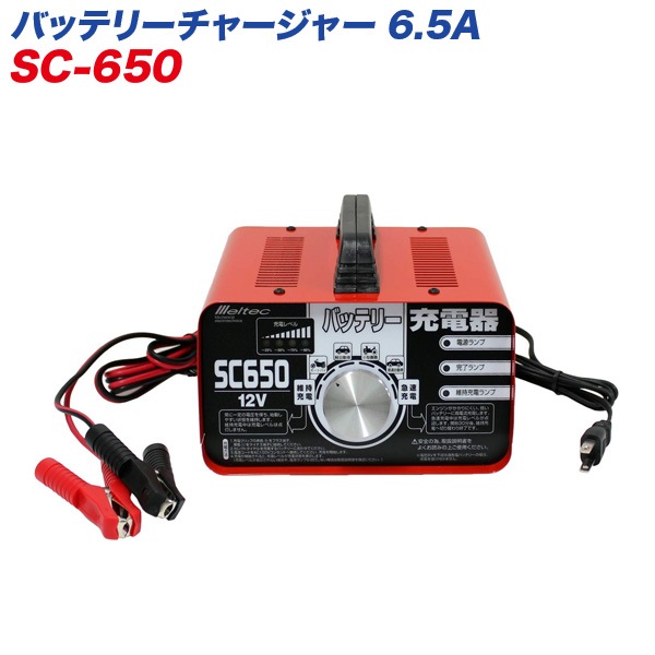 大自工業/Meltec:バッテリー充電器 急速充電機能/維持充電機能付き DC12V/6.5A 2Ah~70Ahまで SC650