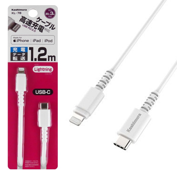 カシムラ Lightningケーブル 1.2m USB PD 3.0 高速充電対応 Power delivery iPhone i...