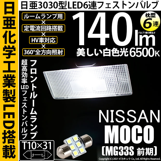 【即納】【メール便可】ニッサン モコ[MG33S 前期モデル]対応 フロントルームランプ用LED T10×31 日亜3030 6連...