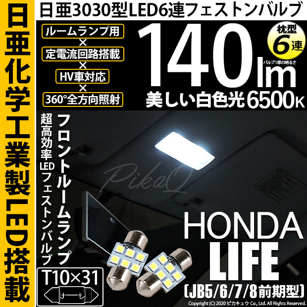 【即納】【メール便可】ホンダ ライフ[JB5/6/7/8 前期]対応 フロントルームランプ用LED T10×31 日亜3030 6...