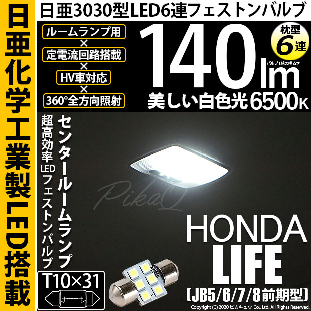 【即納】【メール便可】ホンダ ライフ[JB5/6/7/8 前期]対応 センタールームランプ用LED T10×31 日亜3030 6...
