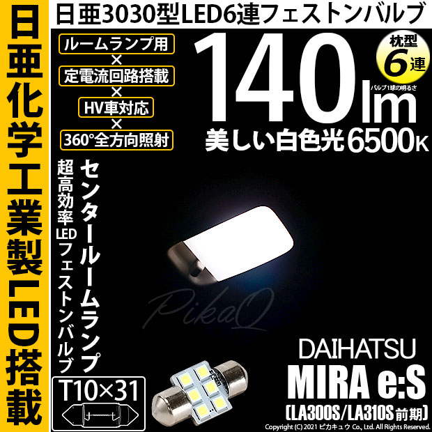 【即納】【メール便可】ダイハツ ミライース[LA300S/LA310S]対応 センタールームランプ用LED T10×31 日亜30...