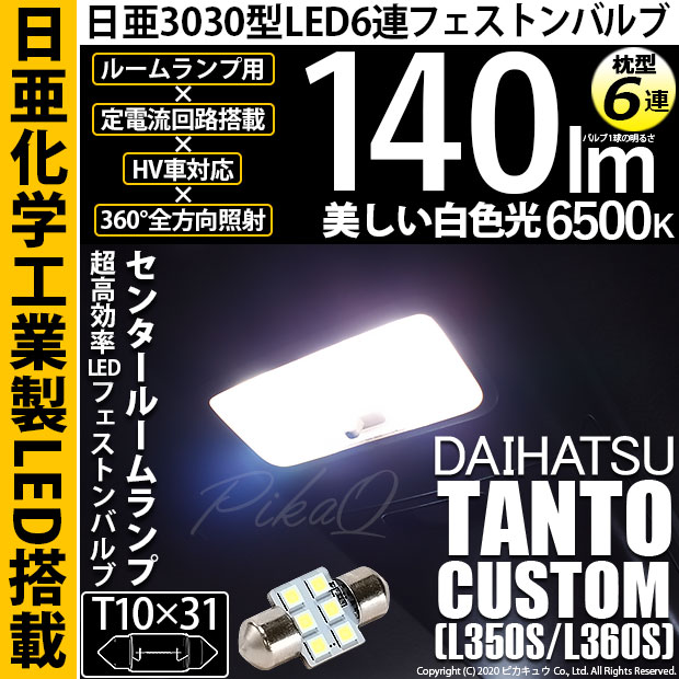 【即納】【メール便可】ダイハツ タントカスタム[L350S/L360S]対応 センタールームランプ用LED T10×31 日亜30...