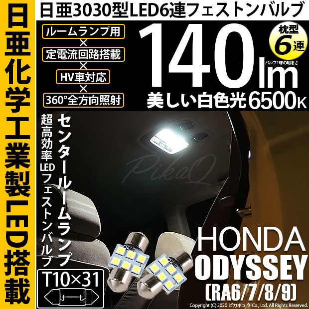 【即納】【メール便可】ホンダ オデッセイ[RA6/7/8/9]対応 センタールームランプ用LED T10×31 日亜3030 6連...