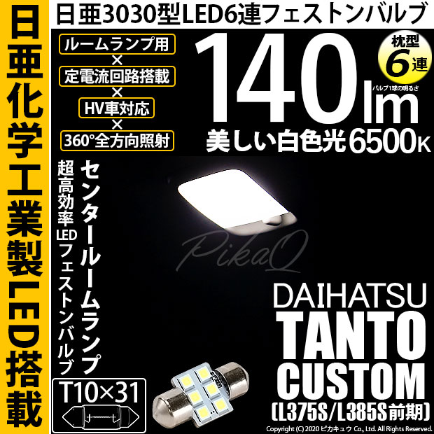 【即納】【メール便可】ダイハツ タントカスタム[L375S/L385S]対応 センタールームランプ用LED T10×31 日亜30...