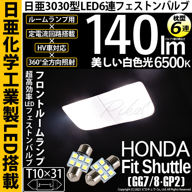 【即納】【メール便可】ホンダ フィットシャトル[GG7/8・GP2]対応 フロントルームランプ用LED T10×31 日亜3030...