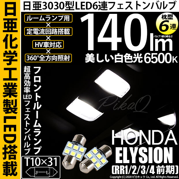 【即納】【メール便可】ホンダ エリシオン[RR1/2/3/4 前期]対応 フロントルームランプ用LED T10×31 日亜3030...