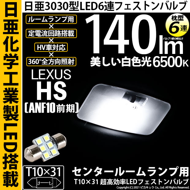 【即納】【メール便可】レクサス HS[ANF10 前期]対応 センタールームランプ用LED T10×31 日亜3030 6連 枕型...