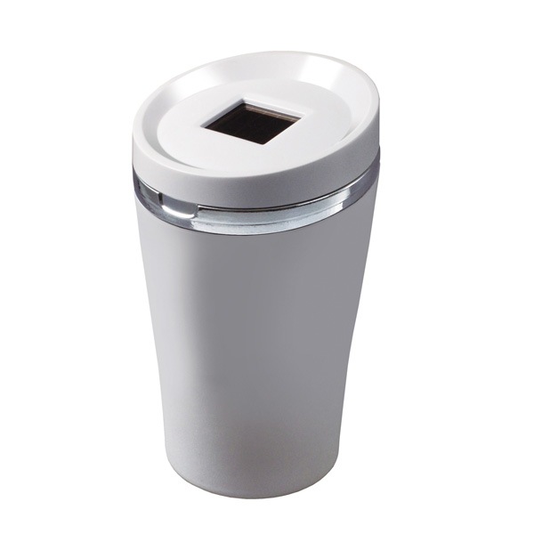 槌屋ヤック/YAC:ワイドなタンブラー型灰皿 ホワイト 灰捨てラクラク ブルーLED付き/PZ-627/