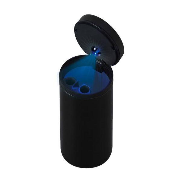 槌屋ヤック/YAC:ワイドなタンブラー型灰皿 ブラック 灰捨てラクラク ブルーLED付き/PZ-626/
