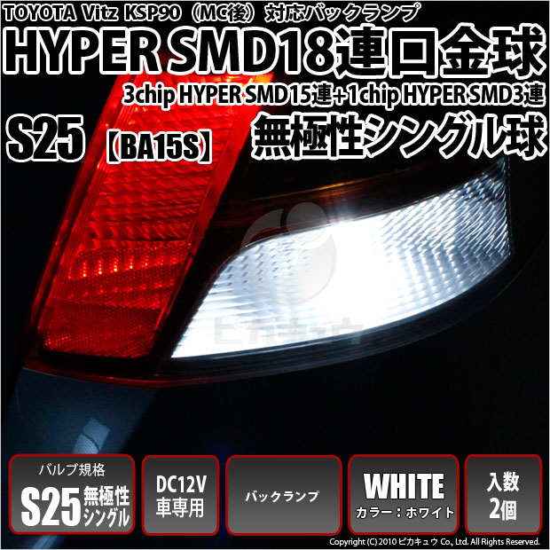 【メール便可】トヨタ ヴィッツ[KSP90系 後期]対応 バックランプ用LED S25s[BA15s]3chip HYPER SM...