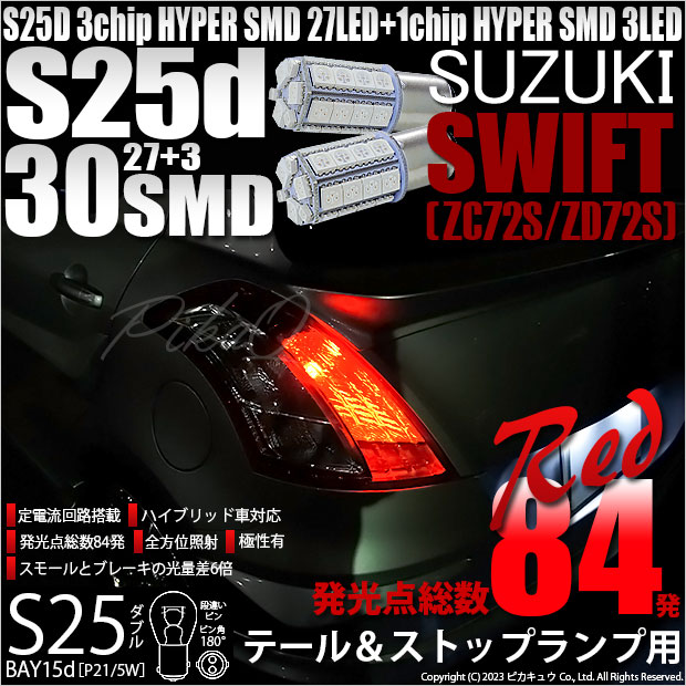 【即納】【メール便可】スズキ スイフト[ZC72S/ZD72S]対応 テール&ストップランプ用LED S25d[BAY15d]3c...