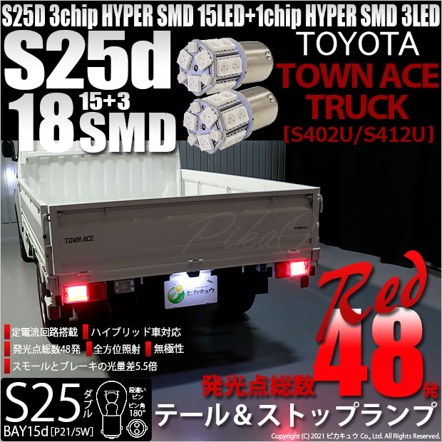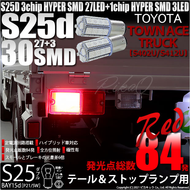 【即納】【メール便可】トヨタ タウンエーストラック[S402U/S412U]対応 テール&ストップランプ用LED S25d[BAY...