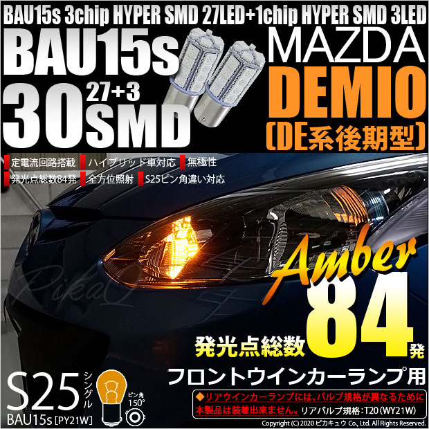 【即納】【メール便可】マツダ デミオ[DE系 後期]対応 フロントウインカー用LED S25s[BAU15s]ピン角違い 3chi...