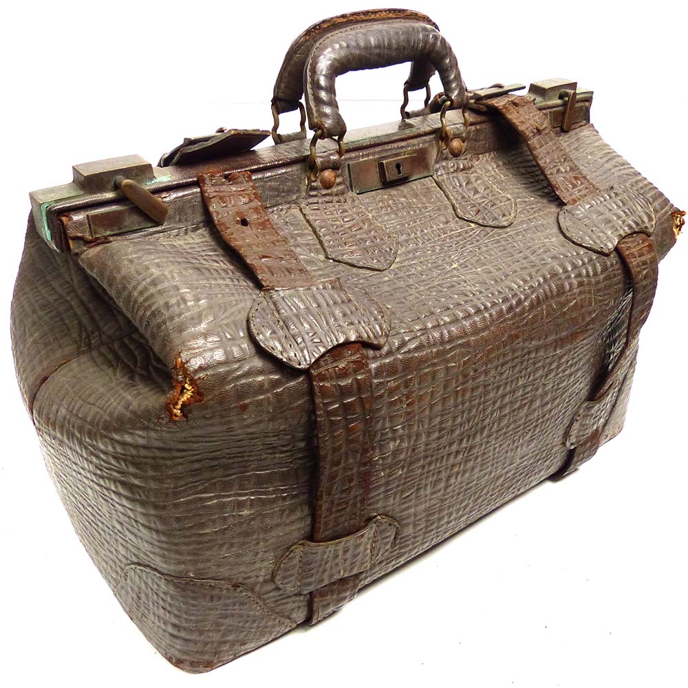 【希少】アンティーク / 1890-1900年代初頭 GENUINE WALRUS表記 /セイウチ革 / トド革ドクターバッグ /...