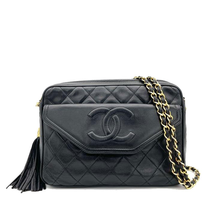 CHANEL シャネル チェーンショルダーバッグ ココマーク フリンジ ラムスキン ブラック ゴールド金具 1番台