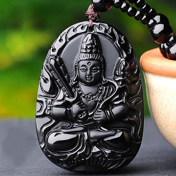 天然黒曜石 ペンダント フルビーズチェーン 証明書 ギフトボックス フルセット 仏 八守護聖 ネックレス お守り プレゼント