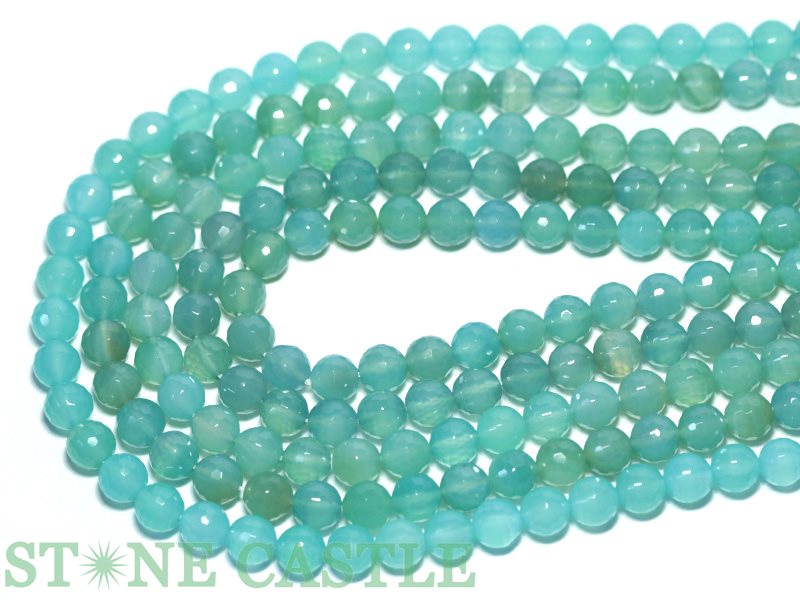 【カットビーズ】シーブルーカルセドニー 128面カット 8mm (数量限定商品)