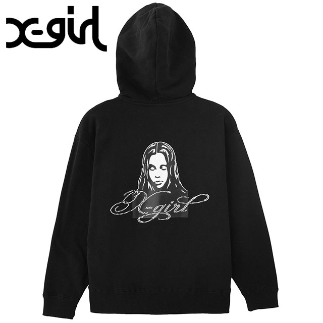 エックスガール X-girl レディース ラインストーンロゴアンドフェイス ジップアップスウェットフーディー [105261012...