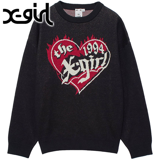 エックスガール X-girl ハートロゴ ジャガードニットトップ [105253015005 FW25] HEART LOGO J...