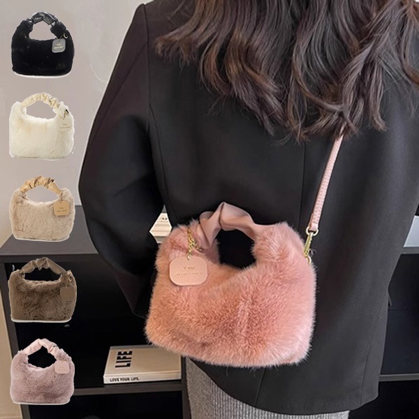 チャーム付き2WAYミニフェイクファーショルダーバッグ