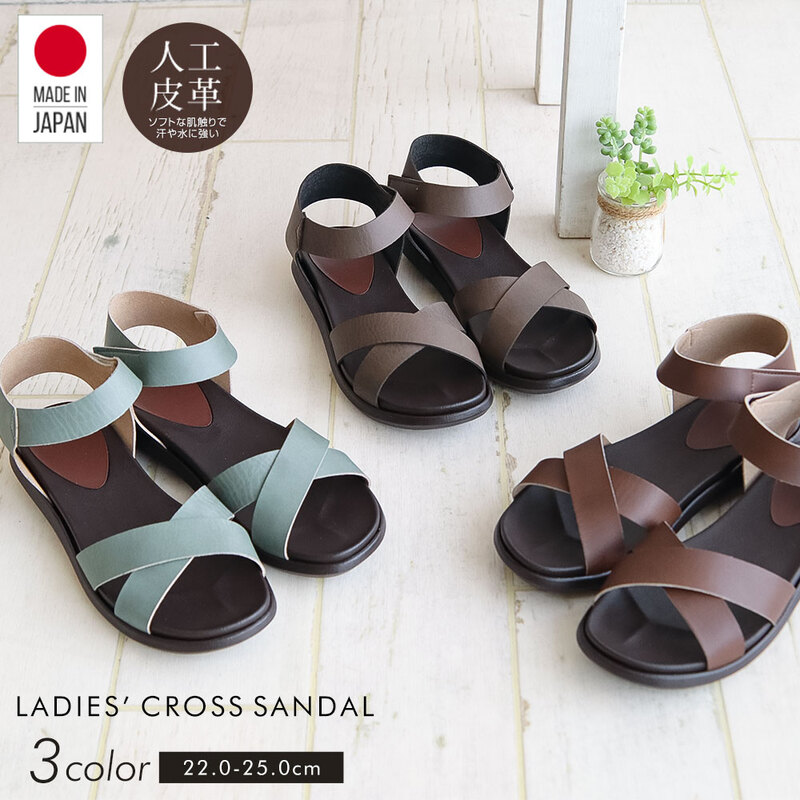 日本製 カジュアル サンダル レディース ぺたんこ フラット やわらかい アンティークソール コンフォート ナチュラル 人工皮革 ...
