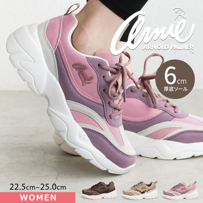 アーノルドパーマー スニーカー レディース 厚底 シューズ ジュニア ブラウン ピンク レオパード ベージュ Arnold Pal...
