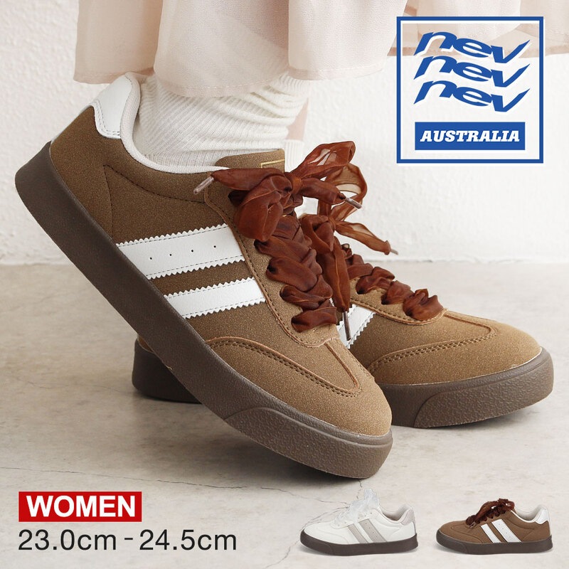 ネヴ スニーカー レディース ローカット リボン シューレース クッションインソール カジュアル 靴 ジュニア 白 ホワイト ブラ...
