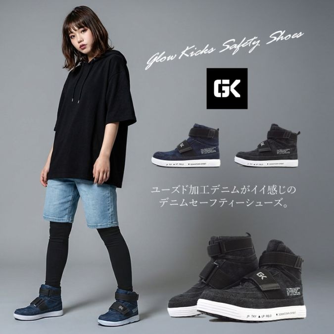 【送料無料】 安全靴 ハイカット デニム グローキックス マジックタイプ 耐滑 クッション性 おしゃれ EVA 3E ケイゾック...