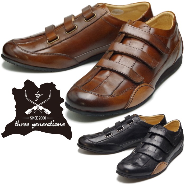 スリージェネレーションズ three generations 103-2443-241 ベルクロ スリッポン レザー メンズ スニ...