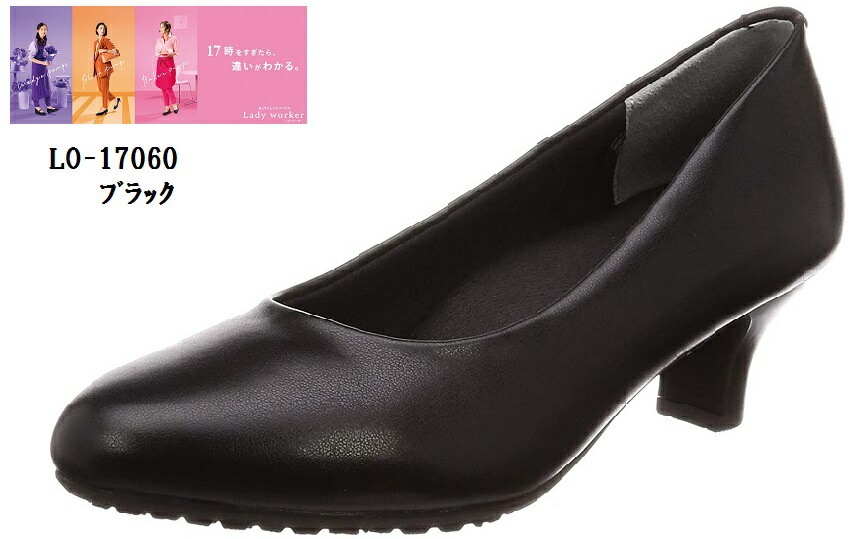 Lady woker(レディワーカー)LO-17060 アシックス商事 幅広3E相当 5cmヒール ラウンドトゥ プレーンパンプス...