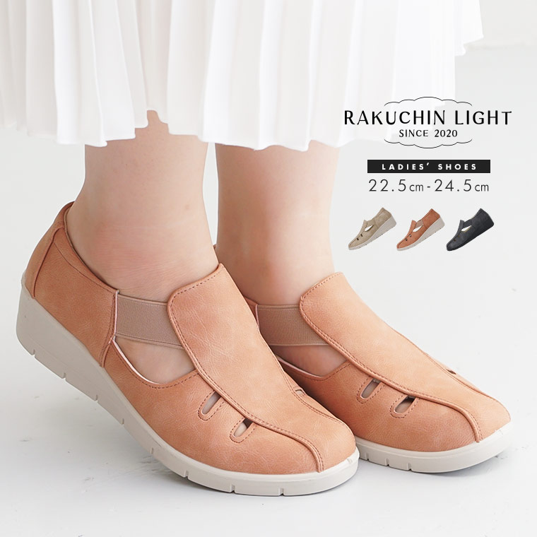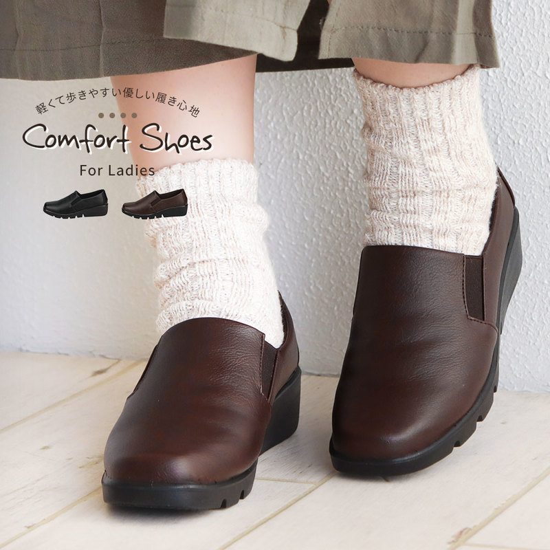 カジュアルシューズ レディース ウォーキングシューズ おしゃれ ウェッジソール スリッポン 歩きやすい 痛くない 黒 ブラック ピ...