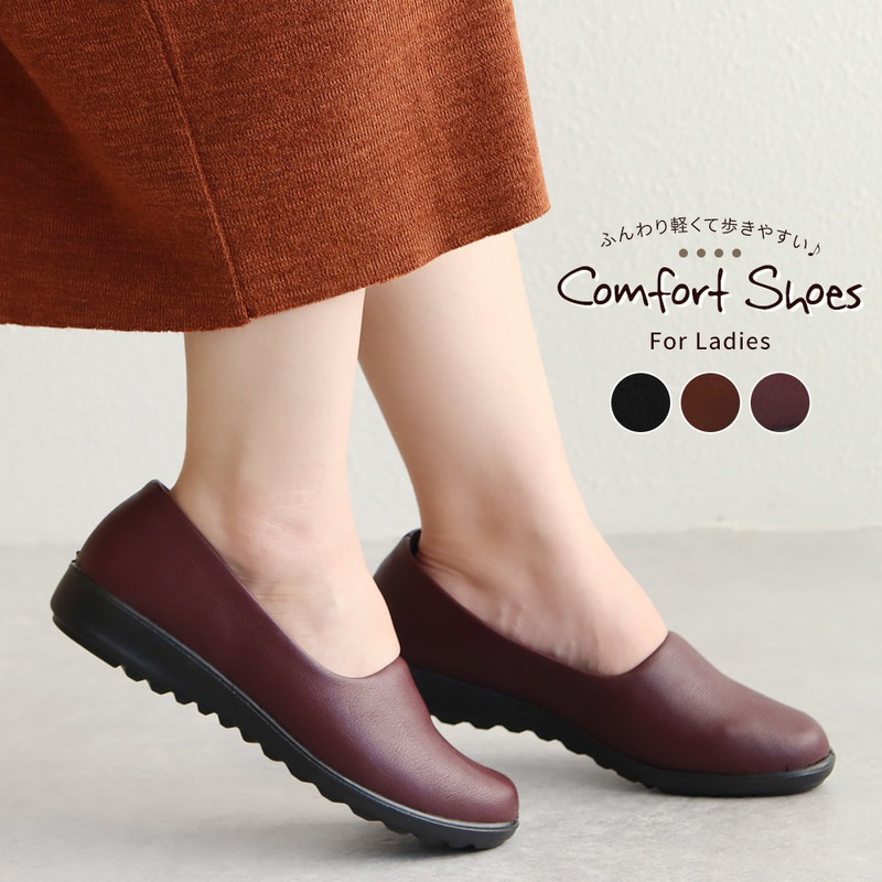 コンフォートシューズ レディース パンプス ローヒール ウェッジソール 母の日 敬老の日 秋冬 黒 ブラック ブラウン ワインレ...