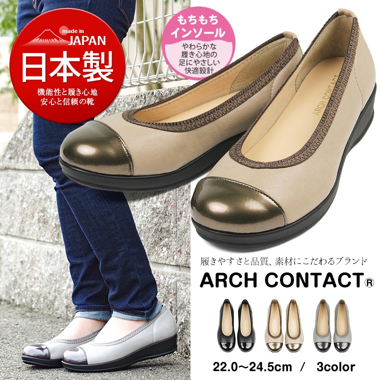 日本製 パンプス ストレッチ ウェッジソール 婦人靴 入学式 卒業式 お呼ばれ 黒 シルバー アイボリー ARCH CONTACT...