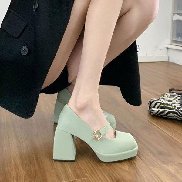 レディース メリージェーンパンプス チャンキーヒール ストラップ付 パンプス スクエアトゥ ハイヒール 太ヒール デート お出掛け...