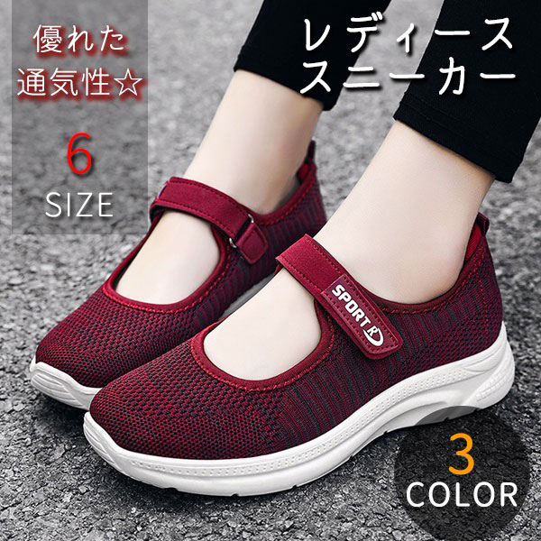 レディース 靴 厚底 スニーカー 夏 ウォーキング ランニング シューズ 通気性 ベルクロ フラットシューズ メッシュ マジックテ...