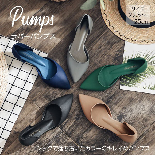 ラバー パンプス レディース ラバーシューズ ヒール EVA ローヒール 履きやすい ビーサン 無地 滑り止め加工