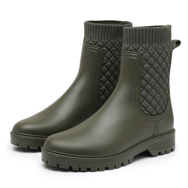 レディース リブニット付き サイドゴア レインブーツ レインシューズ 長靴 アッパー 滑り止め加工 撥水加工 防水性 通気性 伸縮...