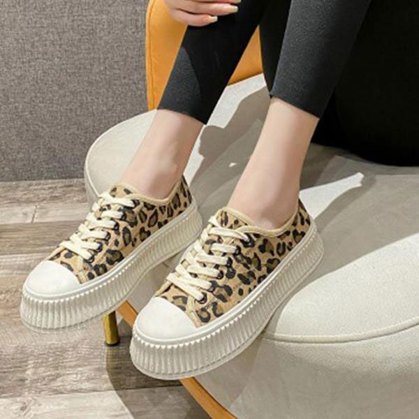 レオパード柄 スニーカー 厚底 レディース ラバーソール ローカットシューズ ヒョウ柄 キャンバス カジュアル 脚長効果 かわいい...