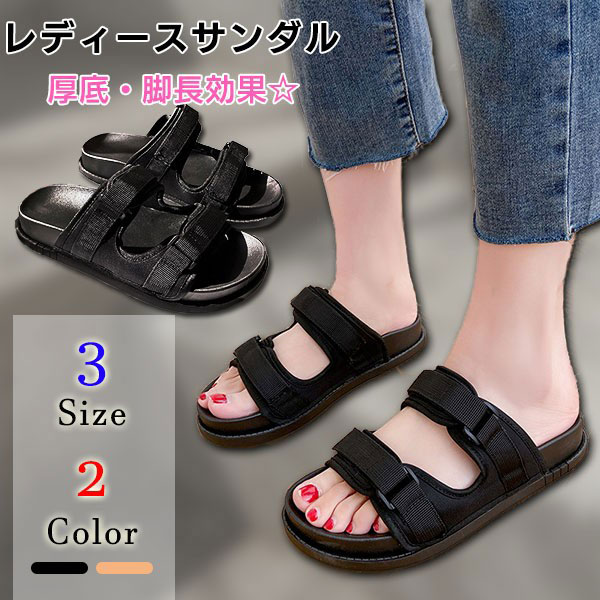 スポーツ サンダル レディース シューズ スリッパ 厚底 痛くない 歩きやすい ベルクロ サンダル PVC素材 美脚 夏