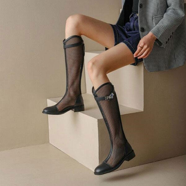 メッシュ サマーブーツ ラウンドトゥ 約3cm ローヒール レディース 靴 シューズ ロングブーツ 脱ぎ履き簡単 歩きやすい カジ...