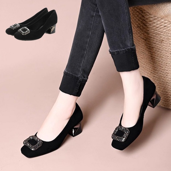 アッパービジュー装飾スクエアトゥパンプス