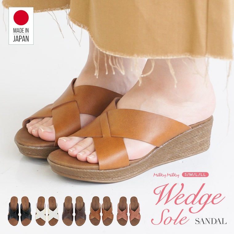 日本製 サンダル レディース つっかけ ウェッジソール オープントゥ ナチュラル カバードサンダル 黒 ブラック ブラウン ベージ...
