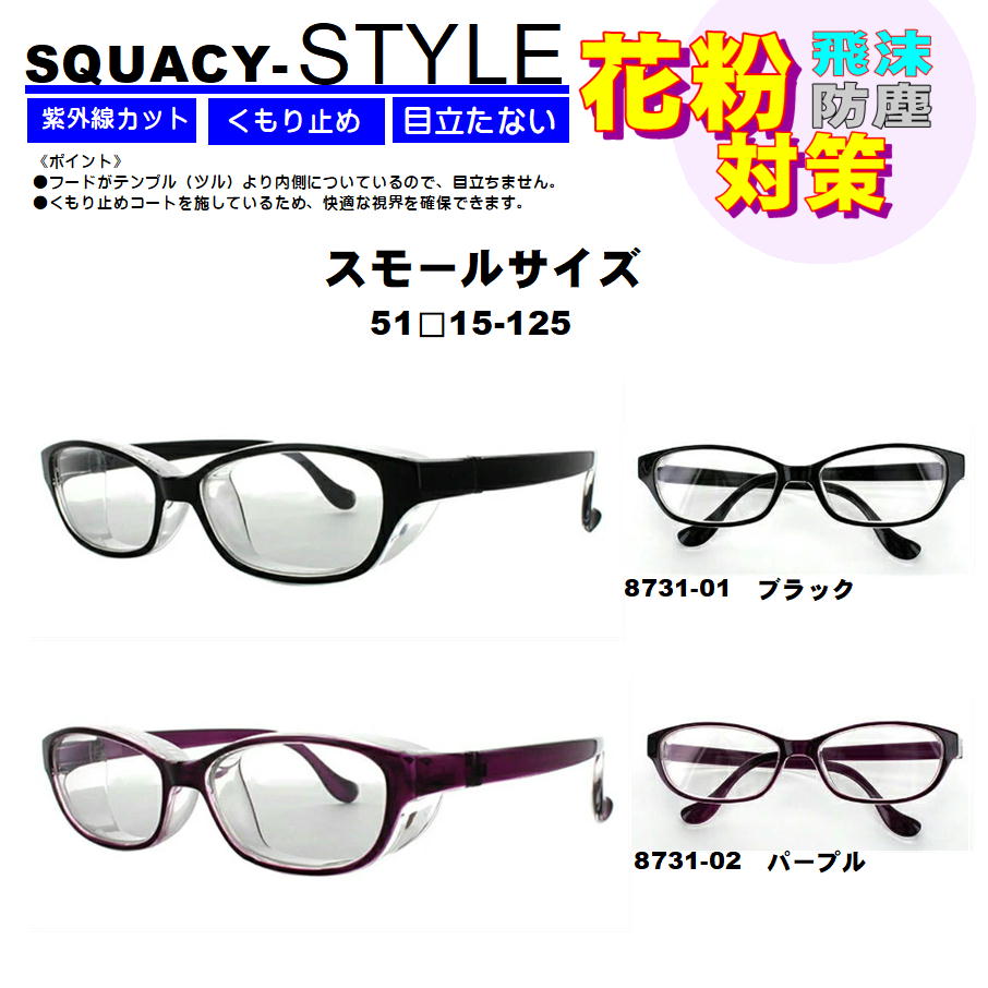 【花粉防止メガネ】【UVカット】 スカッシースタイル スモール パープル