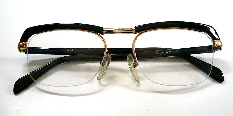 ヴィンテージ ブローライン ナイロール ESSEL NYLORTOURNDI32 50mm メガネフレーム ゴールド/ブラウン 昭...