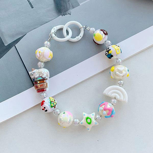 【セール】即納 安い スマホアクセサリー ハンド ストラップ 手首 リストストラップ 雲 かわいい ビーズ 落下防止 リングチェー...